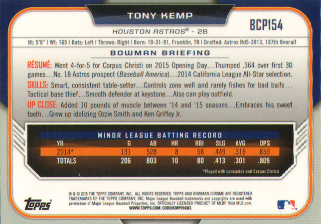 But Bowman Chrome is a set that just seems pointless. I mean Topps already puts Chrome cards in the regular Bowman set. As a matter of fact they look just like these cards, with a few minor differences. But I do like to pick up a few packs of new stuff, not that this is new anymore.